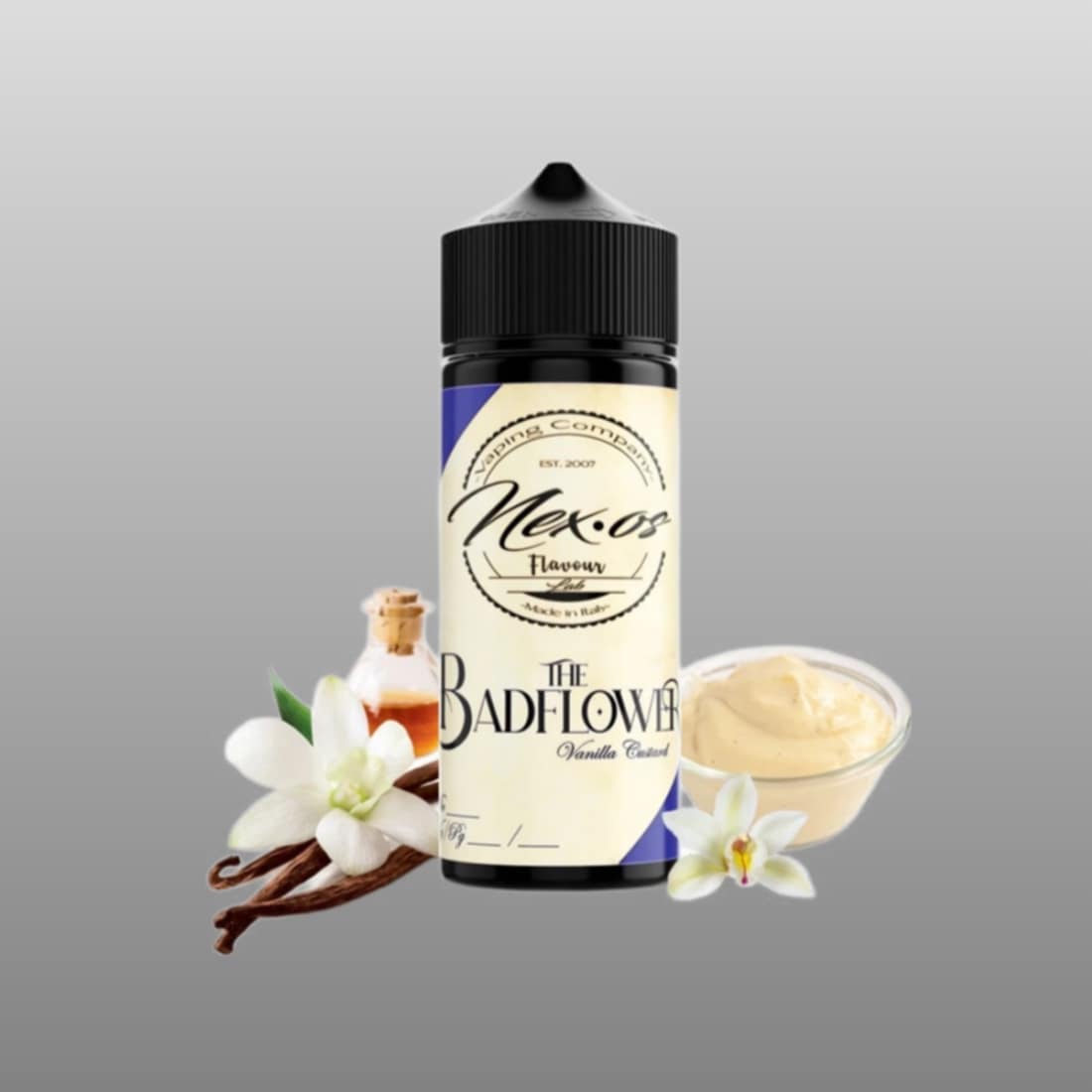 Γευστικό προφίλ Badflower: Η γεύση της γλυκιάς κρέμας custard, εμπλουτισμένη με αρώματα από Γαλλική βανίλια και βανίλια Ταϊτής.